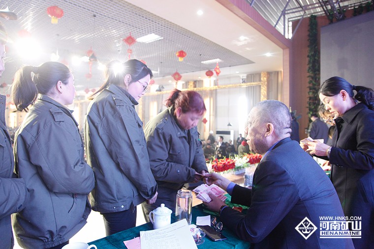 大會(huì)在莊嚴(yán)的國歌聲中正式開始。董事長魏學(xué)明發(fā)表熱情洋溢的新年致辭,他向一年來辛苦奮戰(zhàn)在生產(chǎn)一線的廣大工友及家人表達(dá)了感謝之情,感謝全體員工團(tuán)結(jié)一心、共同拼搏,大家都付出了辛勤的汗水和努力!希望大家堅(jiān)定信心,增強(qiáng)對(duì)公司的歸屬感和責(zé)任感。愿全體員工一如既往,精誠團(tuán)結(jié),共同拼搏,全身心投入到工作之中。按照“樹百年礦源”的愿景目標(biāo),化繁為簡(jiǎn),求真務(wù)實(shí),奪取2018年各項(xiàng)工作的新勝利!