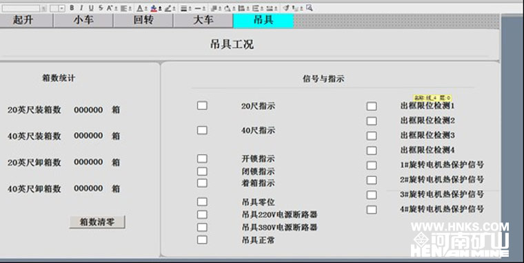 另外該起重機(jī)采用了先進(jìn)的自動(dòng)控制系統(tǒng),實(shí)現(xiàn)了無(wú)人化操作功能,如自動(dòng)尋箱、自動(dòng)定位、遠(yuǎn)程監(jiān)控、數(shù)據(jù)實(shí)時(shí)傳輸?shù)?。起重機(jī)還配備有專用“黑匣子”,對(duì)各個(gè)部位故障快速診斷,能以直觀的方式讓操作者了解起重機(jī)的“健康情況”。為客戶管理貨場(chǎng)提供了解決方案和人性化的操作體驗(yàn),在幫助屏幕上附帶了一個(gè)專家系統(tǒng),使得整機(jī)反饋能縮小到具體的元件、聯(lián)鎖裝置及開(kāi)關(guān),并為這一系列數(shù)據(jù)建立了一個(gè)數(shù)據(jù)庫(kù),為解決問(wèn)題提供幫助。