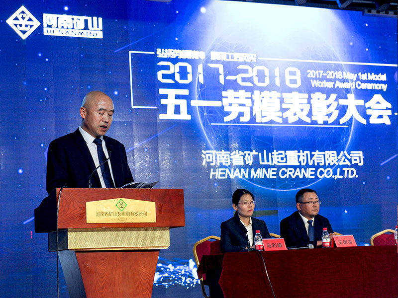 公司創(chuàng)始人、黨委書記崔培軍發(fā)表重要講話。他首先向全體員工致以節(jié)日的問候,向獲獎(jiǎng)勞模表示祝賀!感謝大家為公司所做出的努力與貢獻(xiàn)。他就勞模精神、工匠精神、質(zhì)量比武、生產(chǎn)工期、素質(zhì)素養(yǎng)五個(gè)方面提出希望和要求。希望在勞模精神的鼓舞下,全體員工要抓緊生產(chǎn),服務(wù)客戶。繼續(xù)深化質(zhì)量月活動(dòng)。立足本職崗位,再創(chuàng)新的佳績(jī)。踐行工匠精神,以更高標(biāo)準(zhǔn)嚴(yán)格要求自己。團(tuán)結(jié)一心,眾志成城,努力將河南礦山打造成為一個(gè)享有盛譽(yù)的起重企業(yè)。
